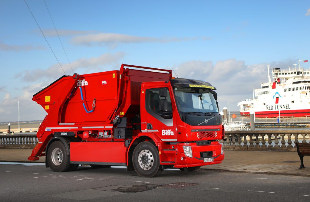 - Biffa innovates Isle of Wight waste management with the Volvo FE Electric skiploader.