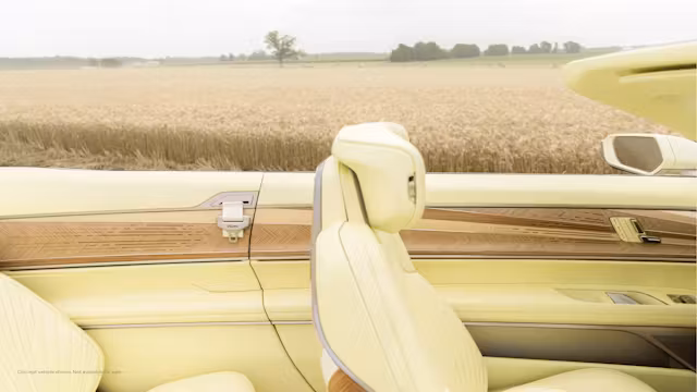 The SOLLEI’s exterior blends emotion with Cadillac’s bold proportions. Its low, elongated body, wide stance, and long coupe doors enhance rear access, while uninterrupted surfaces and a low tail create a sleek, dynamic profile. Discreet button handles streamline the design. Finished in “Manila Cream,” a nod to Cadillac’s 1950s heritage, the colour is meticulously hand-painted by Cadillac craftsmen.