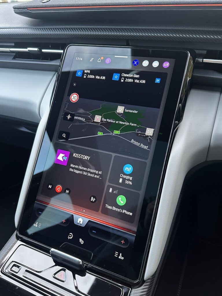 The vivid portrait screen is another highlight, thanks to its ability to pivot position – revealing a secret compartment that automatically locks when you leave the car. Pretty much everything is controlled through this central screen, save for a few shortcut buttons for defrosting and headlights to the right of the steering wheel. However, it’s easy to use, and frequently used menus can be set as shortcuts to the top of the screen. Climate control buttons also stay permanently visible at the bottom of the screen, without the need to go into another menu to change the temperature – a thing I find particularly frustrating on other EVs. Apple CarPlay and Android Auto are also supported as standard.